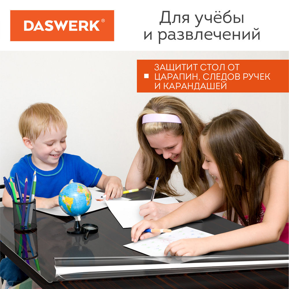 Удачный вариант защитного покрытия для письменного стола. Специфический запах со временем выветривается.