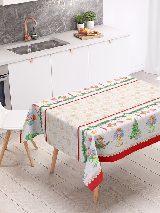 Идеальное решение для создания праздничной атмосферы. Хлопковая скатерть прекрасно подойдет для новогоднего стола и добавит особую атмосферу праздника в вашу кухню или столовую. Выполнена из высококачественной ткани, впишется в любой интерьер и станет настоящим украшением вашего праздничного стола.