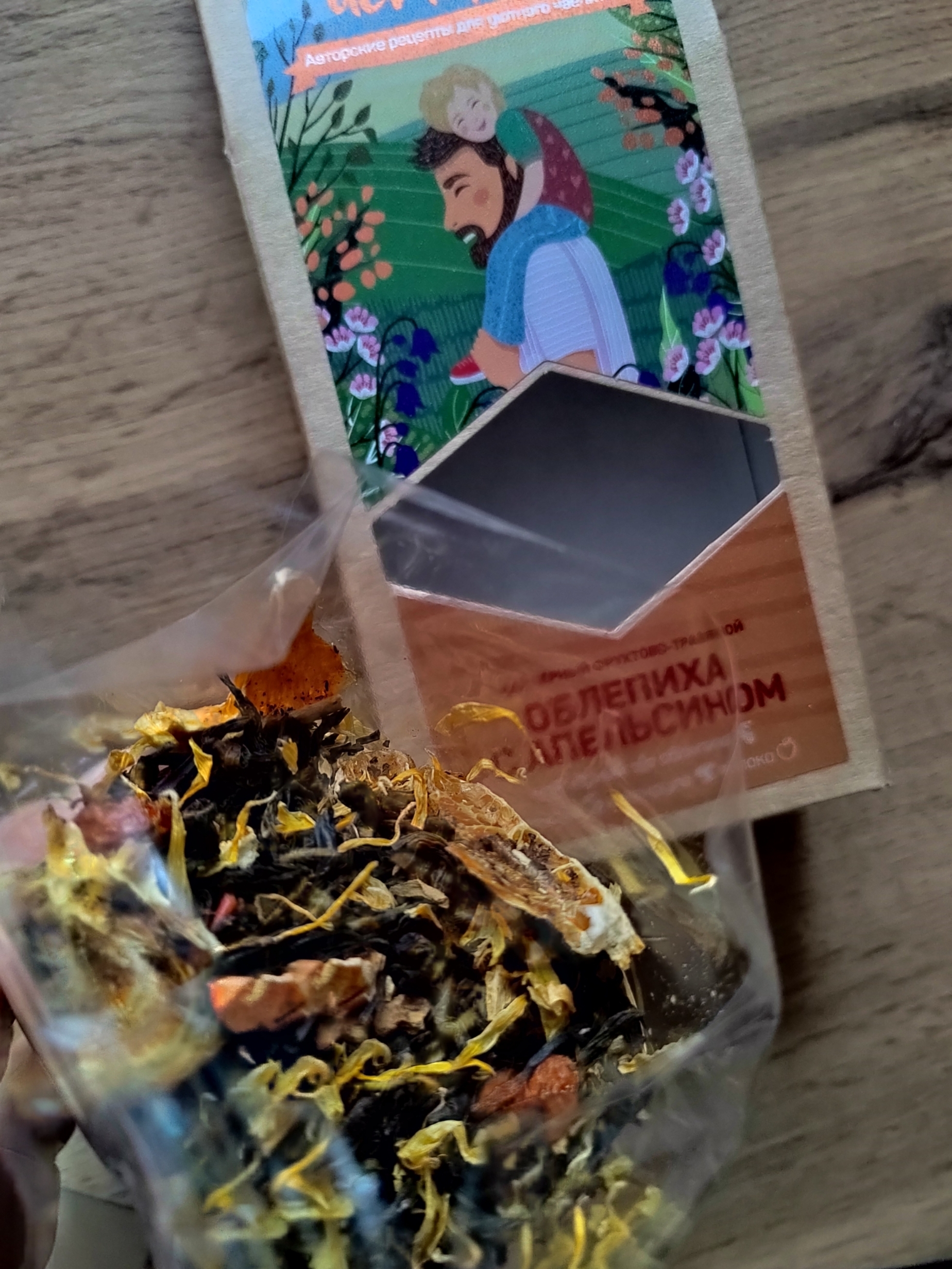 Витаминная фруктово-ягодная смесь на основе чёрного индийского чая, дополненная ягодами облепихи, дольками и цедрой апельсина, кусочками яблока и лепестками календулы.