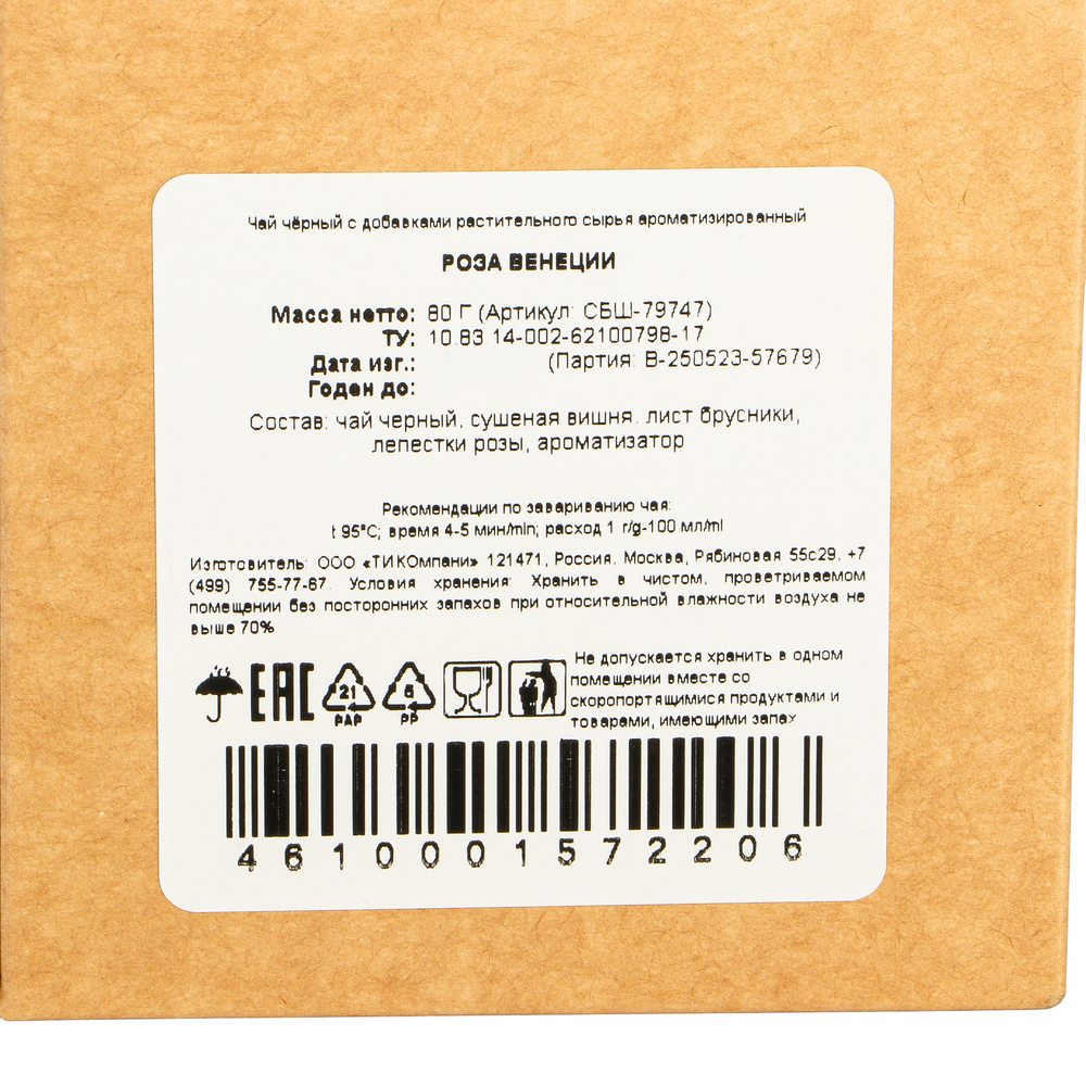 Чай черный, Вишня сушеная черная, брусничный лист, роза, ароматизатор.Способ приготовления