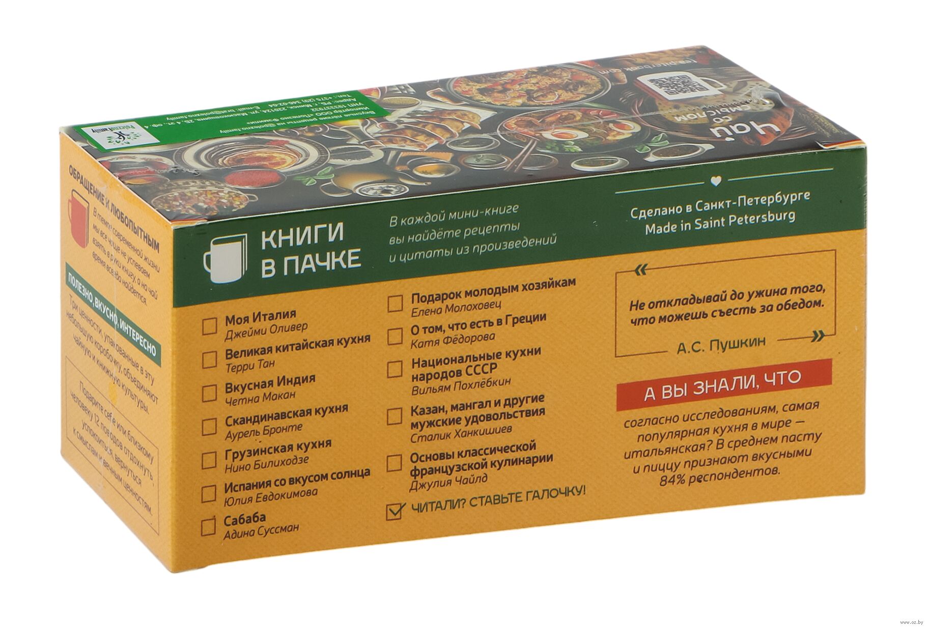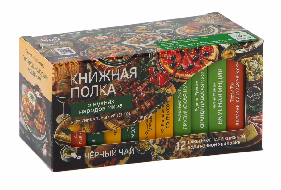 Подарочный набор "Книжная полка. О кухнях народов мира" с чёрным чаем "Сладкий бергамот" (12 пакетиков)