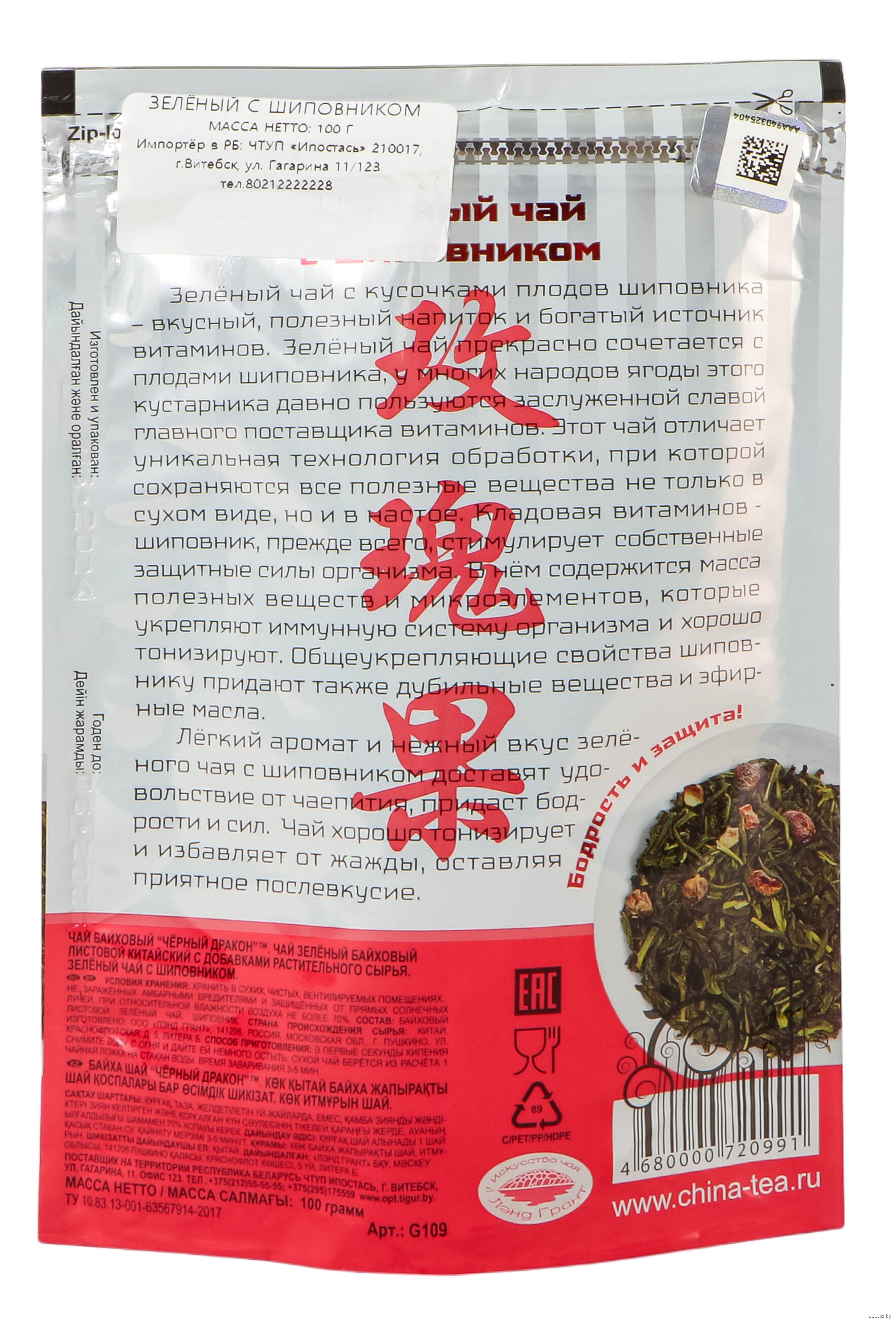 Байховый листовой зелёный чай, измельченные плоды шиповника.Способ приготовления