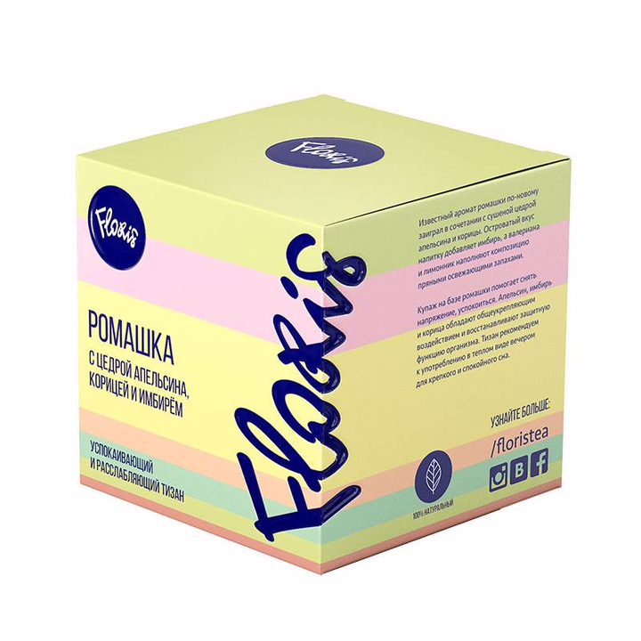 Купаж на базе ромашки помогает снять напряжение, успокоиться. Апельсин, имбирь и корица обладают общеукрепляющим воздействием и восстанавливают защитную функцию организма. Тизан рекомендуем к употреблению в теплом виде вечером для крепкого и спокойного сна.