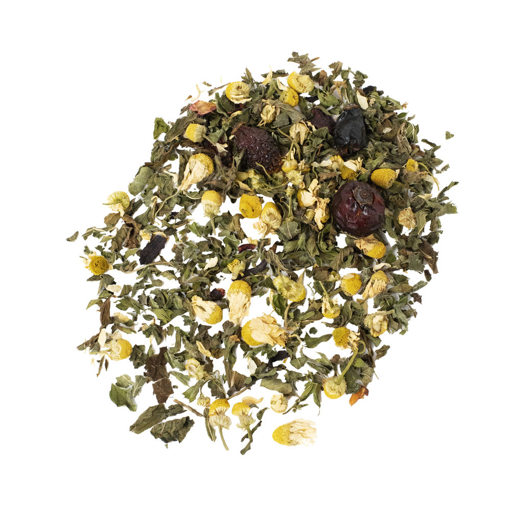 Купаж на базе цветков ромашки помогает быстрее успокоиться и снять напряжение после стресса. В состав входят шиповник и цветки гибискуса, в которых содержится много витамина С.