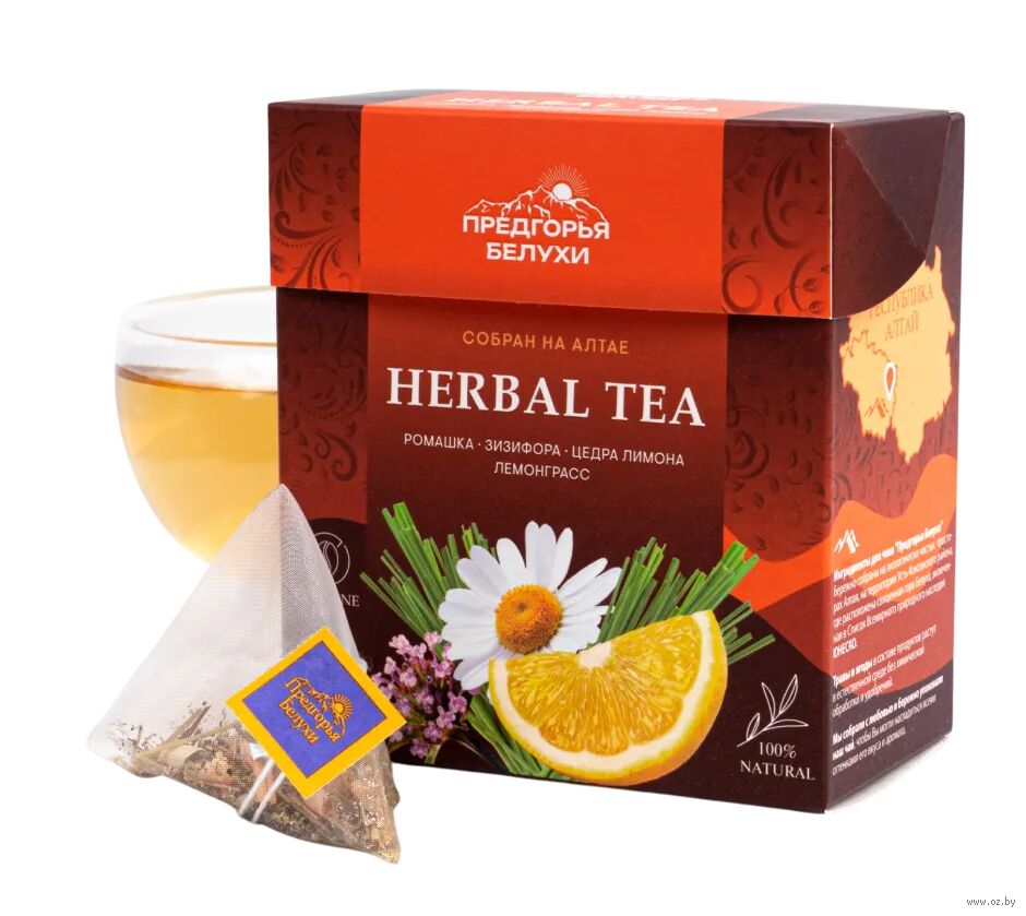 Травяной чай "Предгорья Белухи" – настоящий витаминный сбор с ярким мятно-лимонным ароматом.