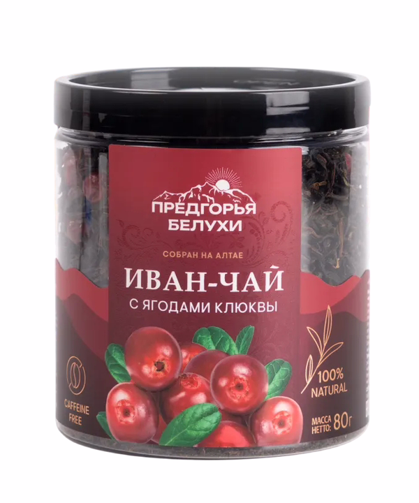 В сочетании с ягодами клюквы ферментированный иван-чая раскрывается невероятным ароматом и насыщенным вкусом с кисло-сладкими нотками. При этом в чайной композиции клюква и кипрей дополняют и усиливают полезные свойства друг друга, делая напиток настоящей сокровищницей витаминов.