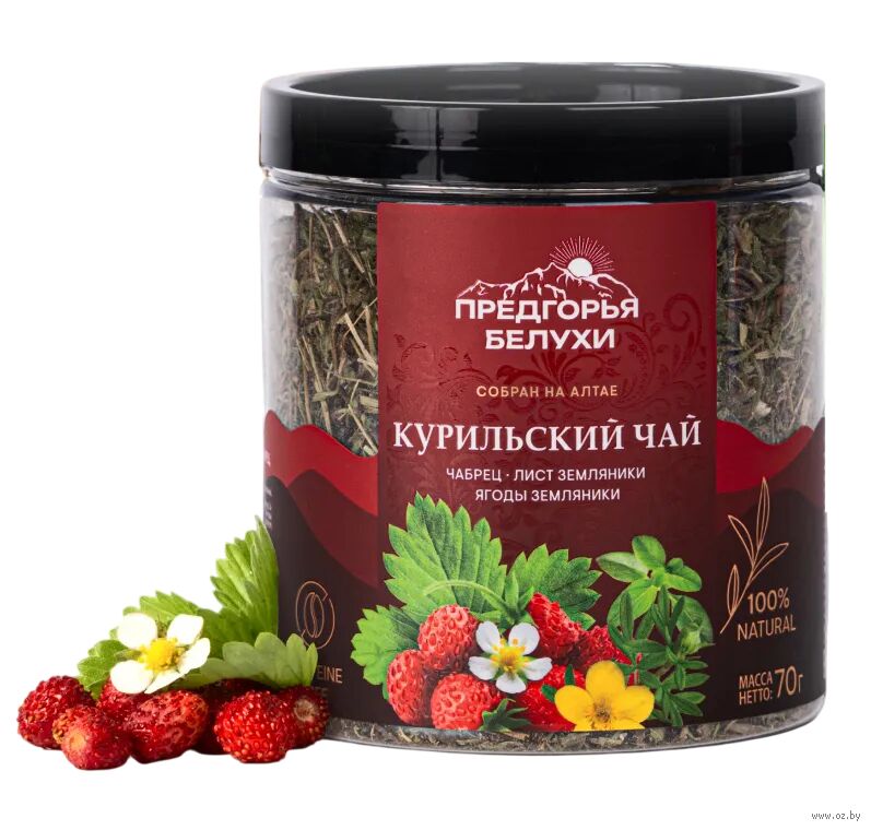 Чабрец, курильский чай, лист земляники, ягоды земляники.