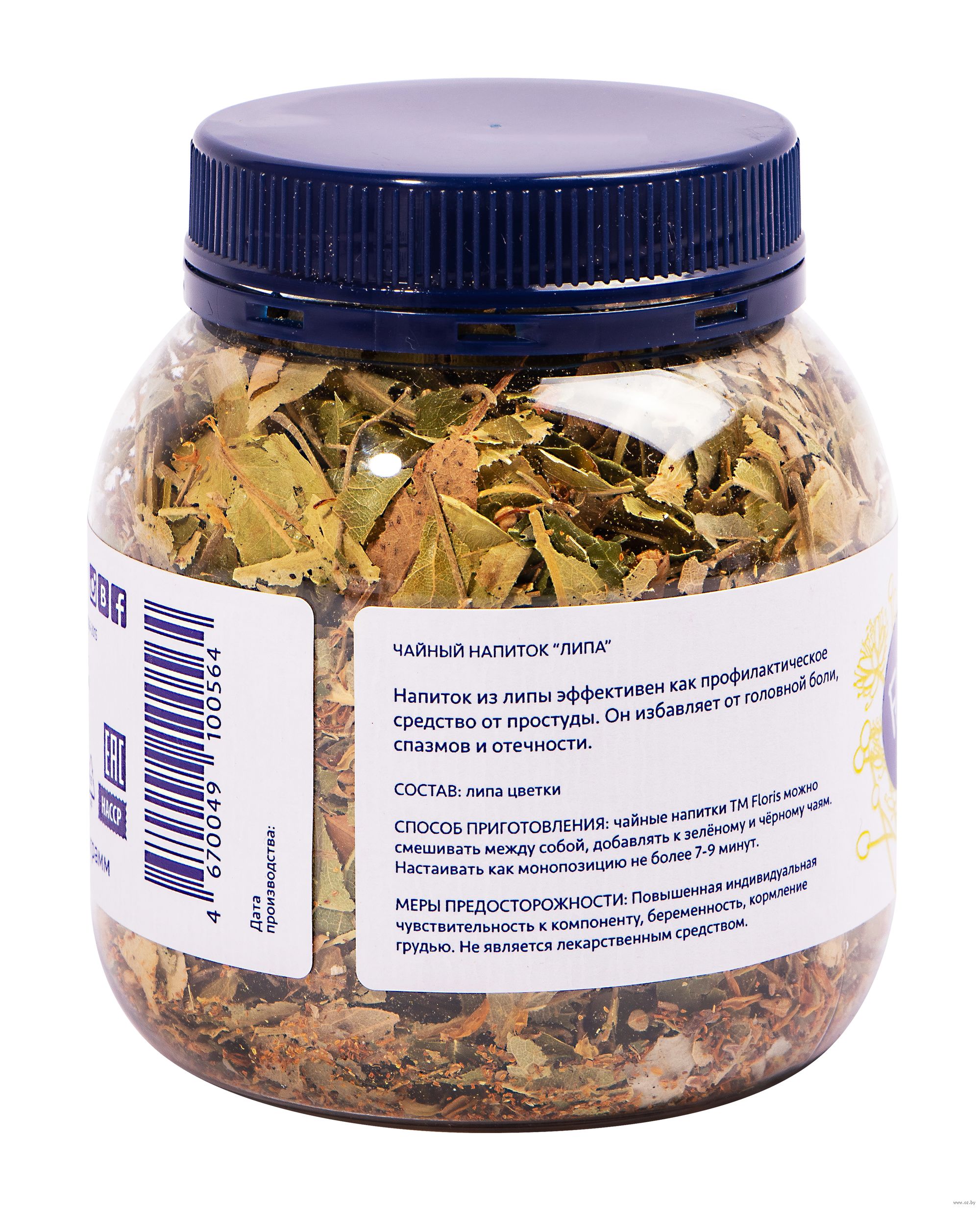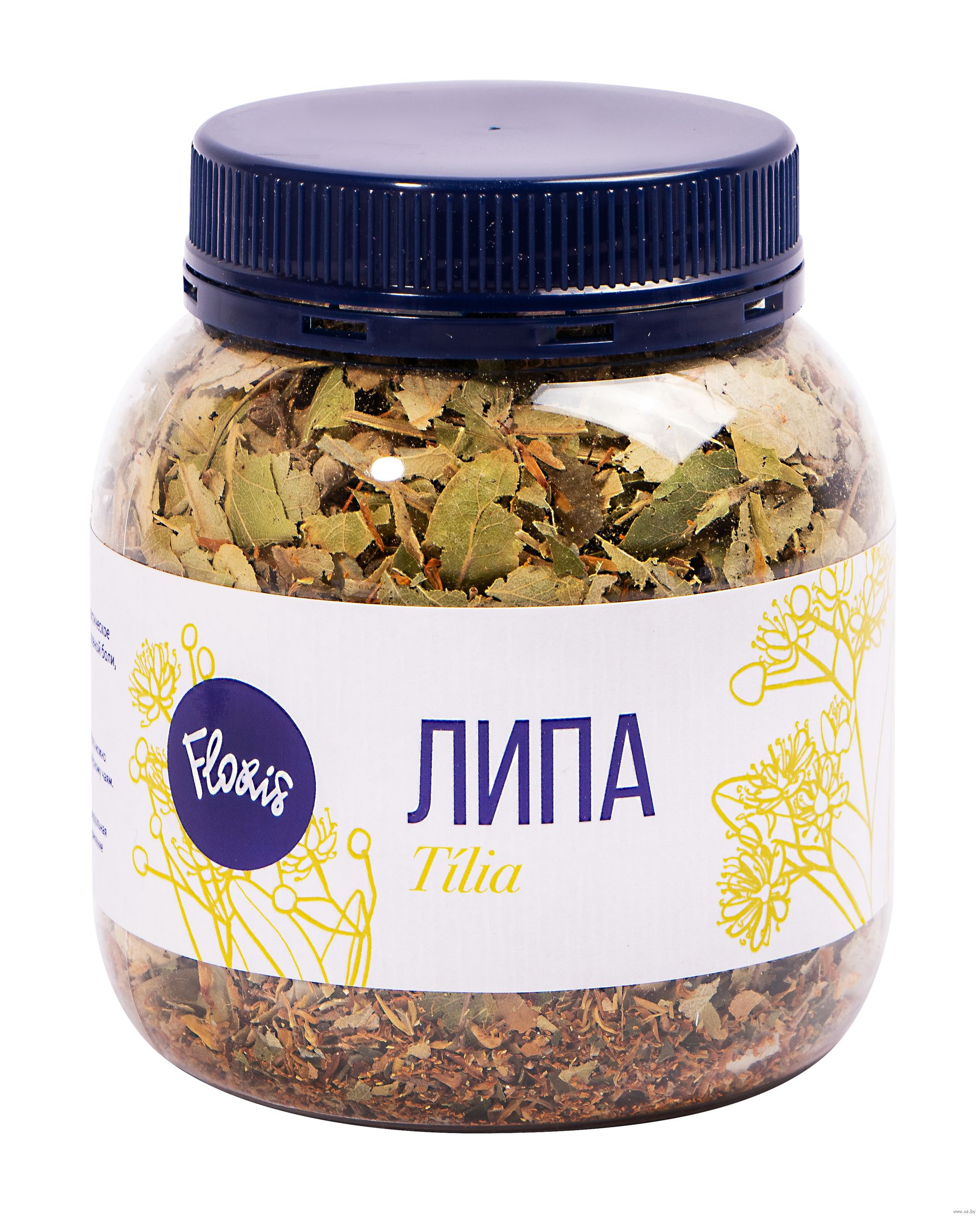 В прозрачной баночке сушеная Липа сердцевидная (Tília cordáta), произрастающей на Урале. Является одним из самых активных медоносных растений, за счёт чего обладает душистым вкусом и ароматом. Липу используют для приготовления чая, коньяков и ликеров.