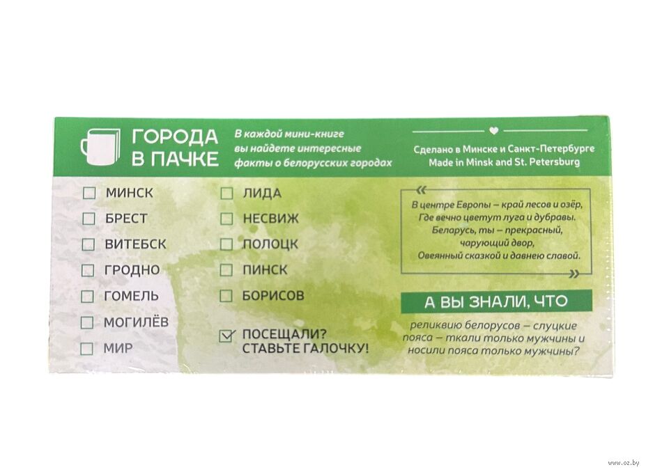 В каждой мини-книге вы найдете интересные факты про белорусские города. Города в пачке:
