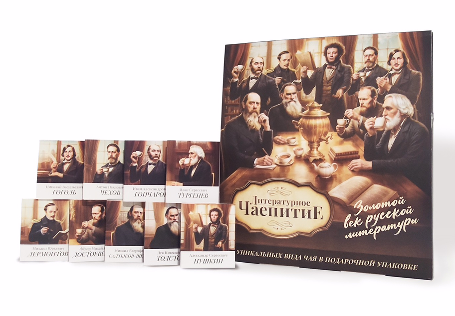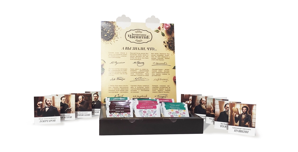 Внутри коробки находятся вкладыши с информацией о следующих писателях: