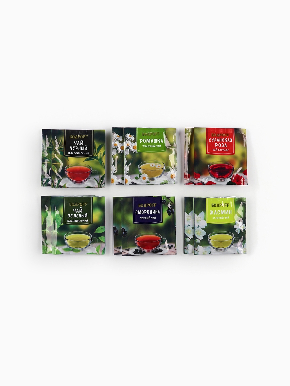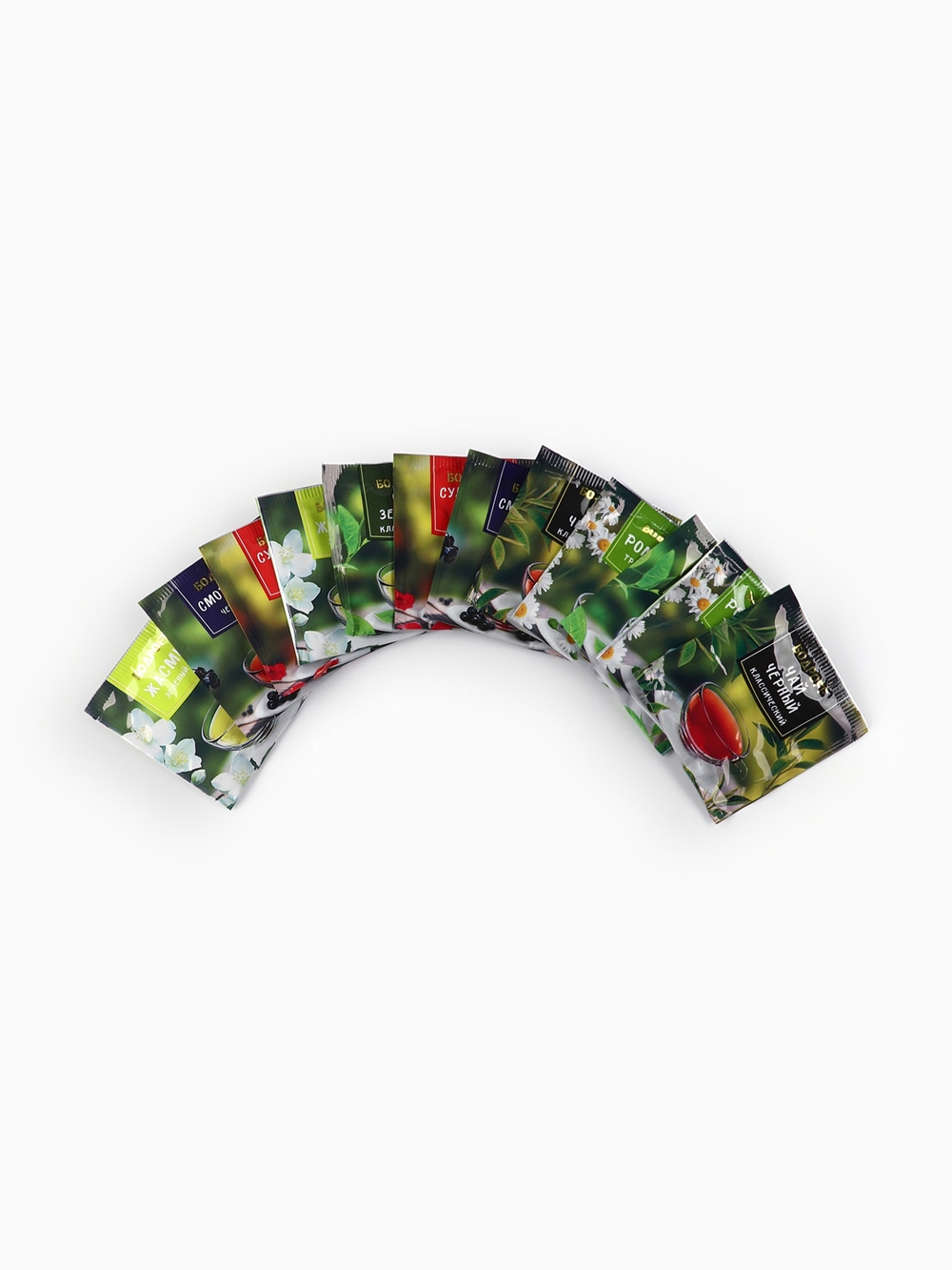 Эта коллекция включает в себя разнообразные сорта чая: от классического черного и зеленого до каркаде и травяного. Каждый пакетик наполнен качественными чайными листьями и натуральными добавками, создающими гармоничные и яркие вкусовые сочетания, которые порадуют даже ценителей.
