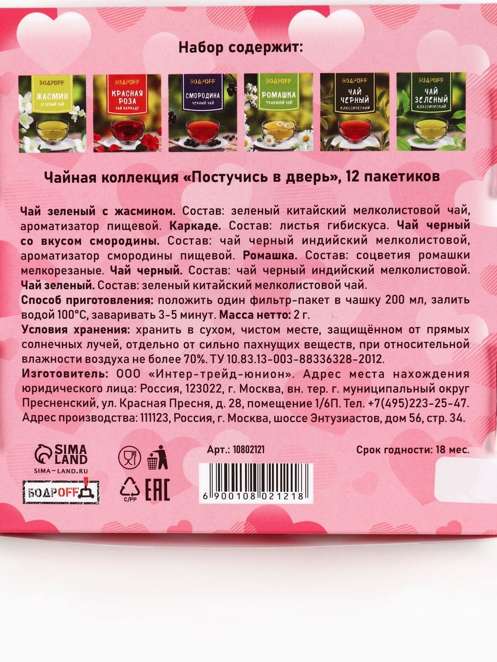 Чайная коллекция "Постучись в дверь" – это уникальный набор, созданный специально для празднования Международного женского дня 8 марта. В упаковке содержится 12 пакетиков ароматного чая, каждый из которых приглашает вас в мир тепла, заботы и нежности, идеально подходящий для этого особенного дня.
