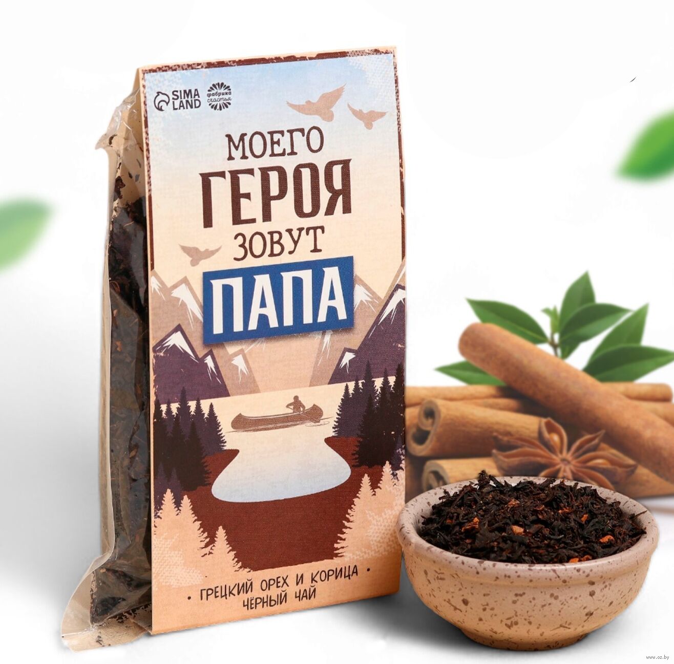 Чай подарочный "Моего героя зовут Папа" со вкусом корицы и грецкого ореха.