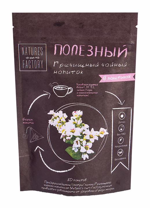 Напиток от "Nature's Own Factory" – это отшлифованные семена специального подвида татарской гречихи, выращиваемого в горных районах на Тайване.
