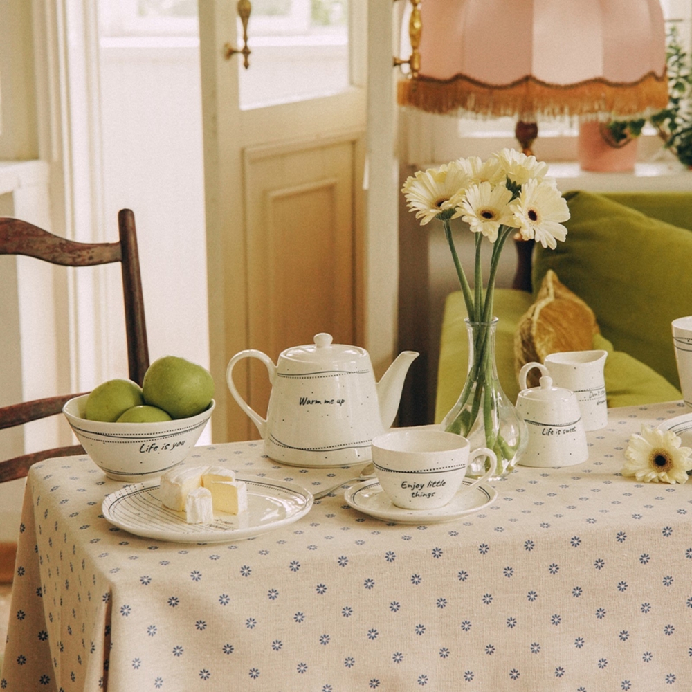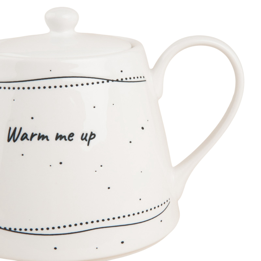 Белоснежная посуда с надписями, такими как "You are my sunshine" и "Enjoy little things", создаёт атмосферу уюта и тепла в вашем доме. Изящный рельеф и минималистичные линии вдохновлены стилем ручной керамики, который подчёркивает естественность и гармонию. Каждое изделие будто приглашает замедлиться и насладиться моментом.