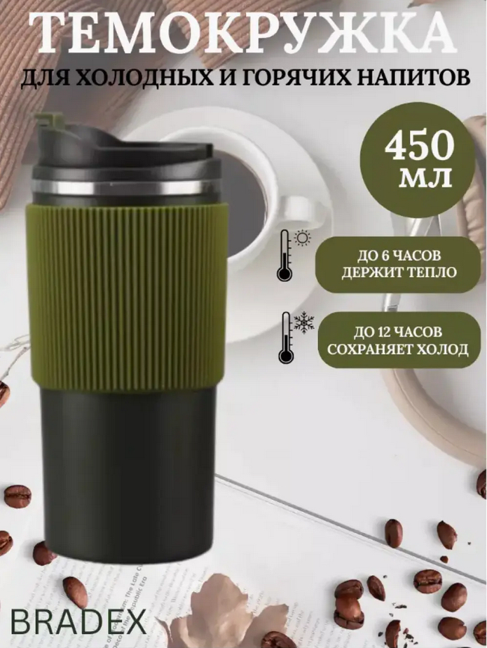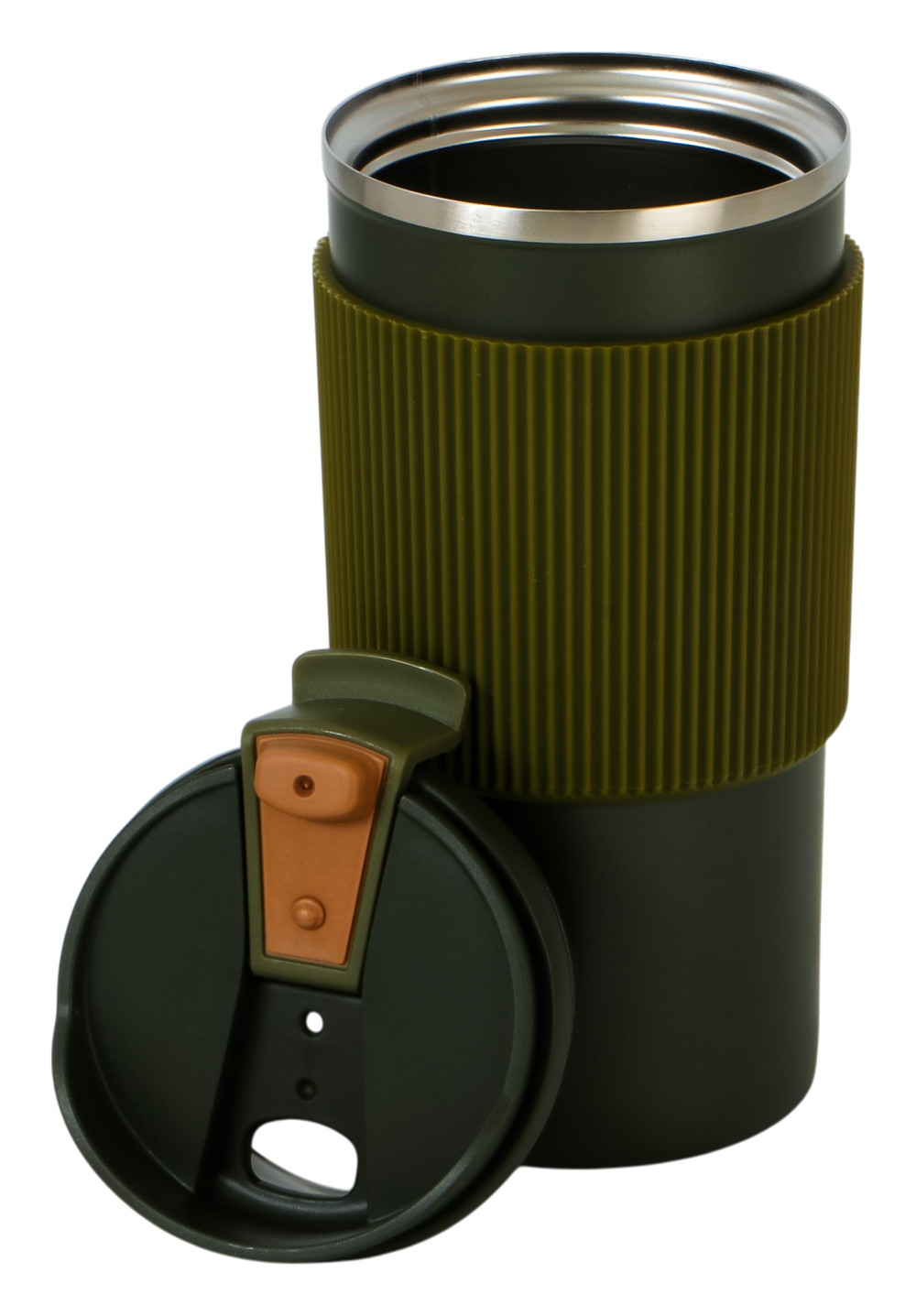 Силиконовая наружная вставка защищает от обжиганий – кружка не нагревается. Удобно и приятно держать в руках. В нижней части автостакана есть резиновая основа, благодаря которой предотвращается скольжение термокружки и обеспечивается стойкость. Флип-топ (откидная крышка) надежно зафиксируется на другой стороне и можно не беспокоиться о том, что она будет мешать при питье.