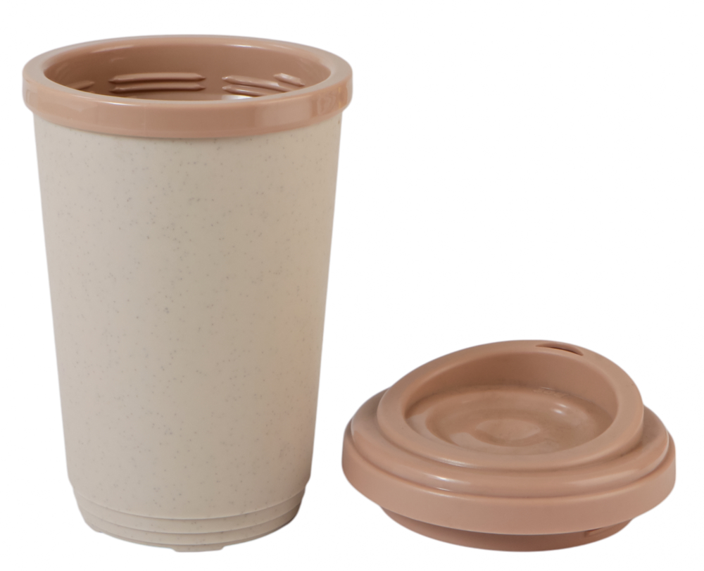Стакан с крышкой имеет комфортный диаметр корпуса, удобно ложится в руку и подходит к подстаканникам в машине. Крышка с носиком имеет язычок для удобного открывания.