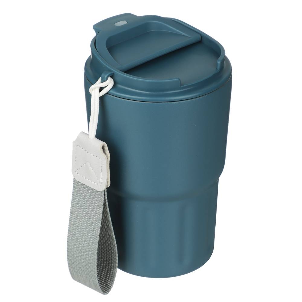 Компактный объём 360 мл удобно помещается в автомобильный подстаканник или рюкзак, а эргономичный дизайн делает каждое использование комфортным. Стильный синий цвет и практичный ремешок добавляют изделию современный вид и мобильность.