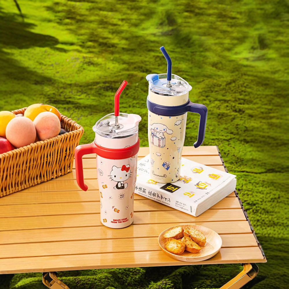 Вместительная кружка с очаровательным дизайном идеально сохраняет температуру напитков. Подойдет для работы, прогулок или пикника.