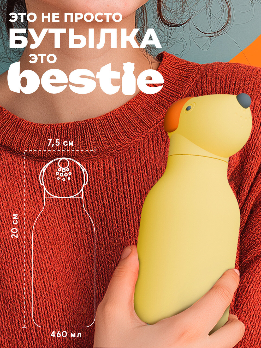 Bestie делают каждый день ярче и удобнее. Эргономичная форма с трубочкой позволяет легко поддерживать водный баланс, даже находясь в движении, а весёлый дизайн добавляет игривую нотку в ваш образ.