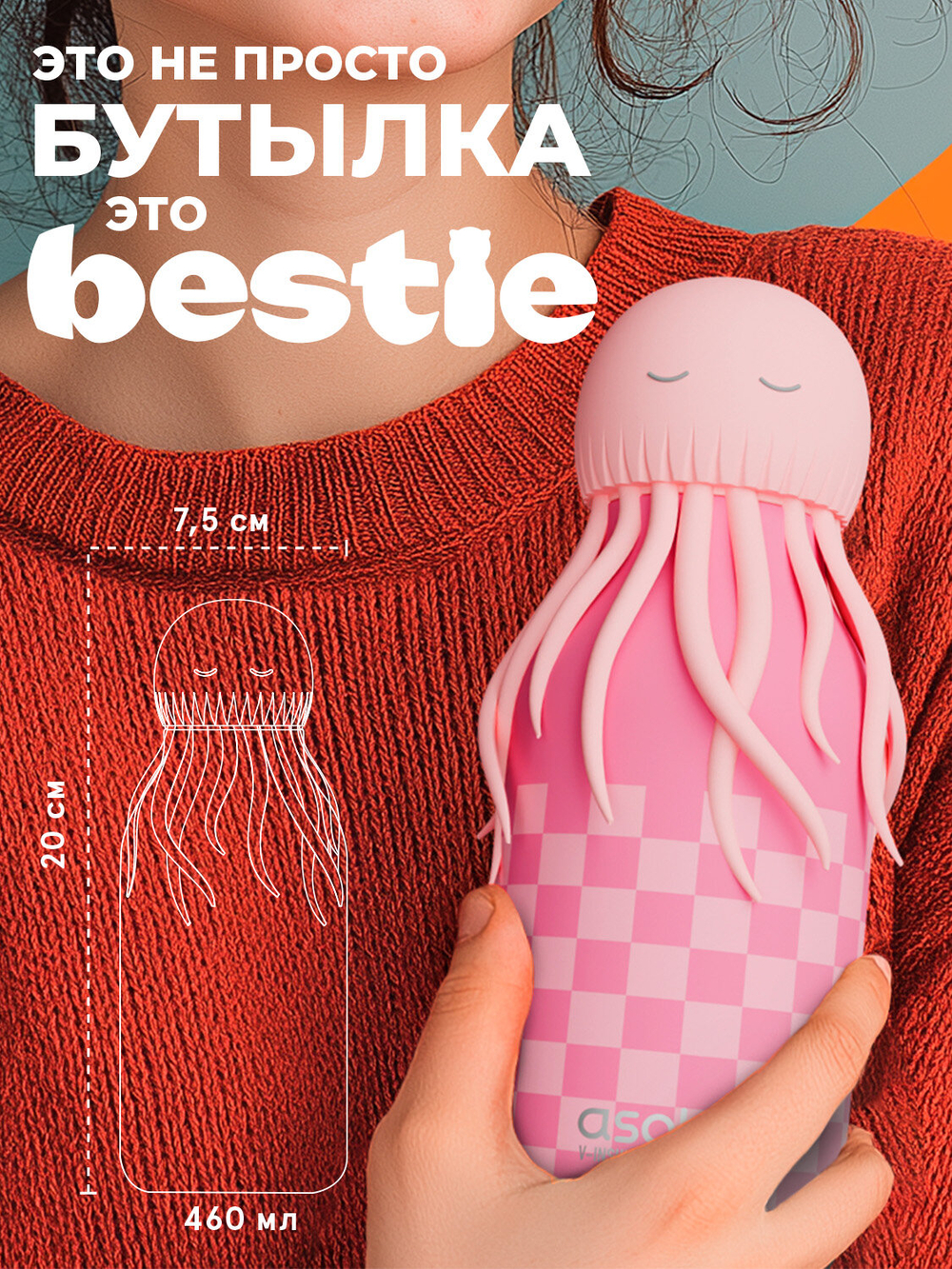 Bestie делают каждый день ярче и удобнее. Эргономичная форма с трубочкой позволяет легко поддерживать водный баланс, даже находясь в движении, а весёлый дизайн добавляет игривую нотку в ваш образ.