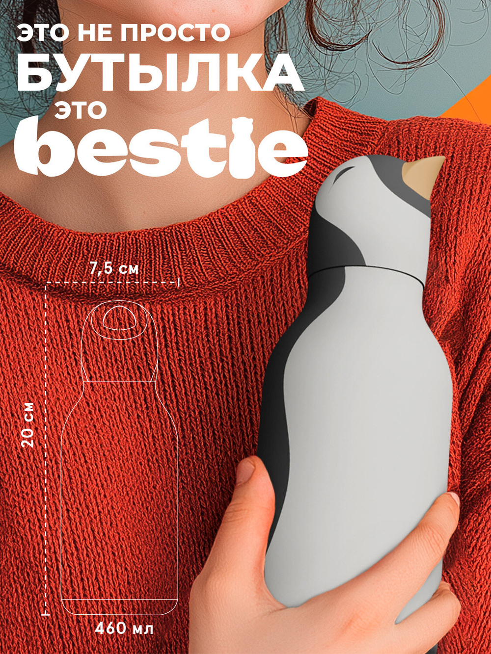 Bestie делают каждый день ярче и удобнее. Эргономичная форма с трубочкой позволяет легко поддерживать водный баланс, даже находясь в движении, а весёлый дизайн добавляет игривую нотку в ваш образ.