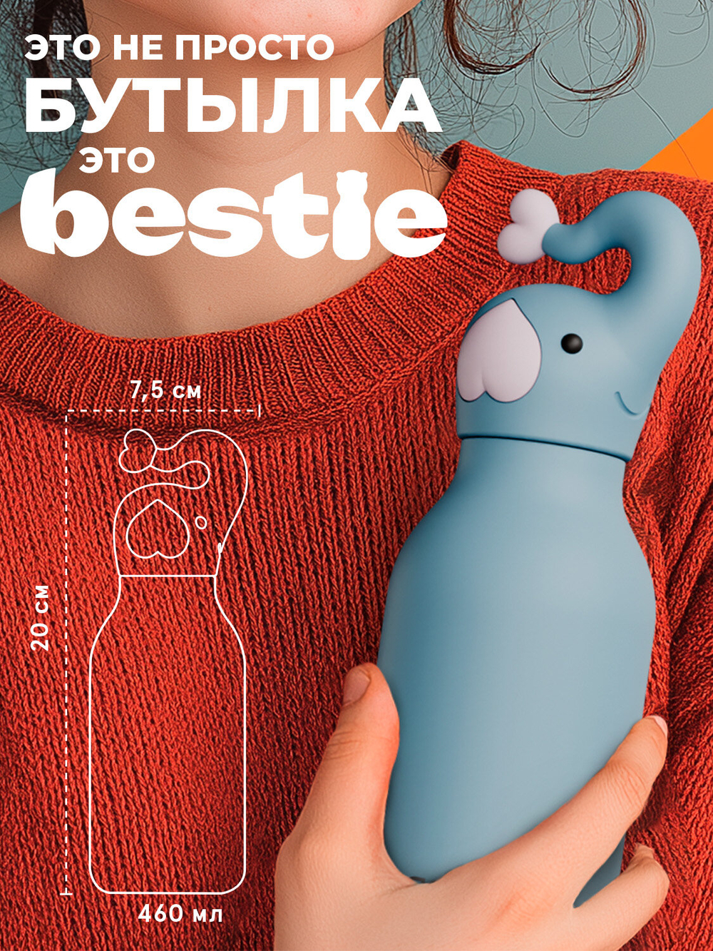 Bestie делают каждый день ярче и удобнее. Эргономичная форма с трубочкой позволяет легко поддерживать водный баланс, даже находясь в движении, а весёлый дизайн добавляет игривую нотку в ваш образ.