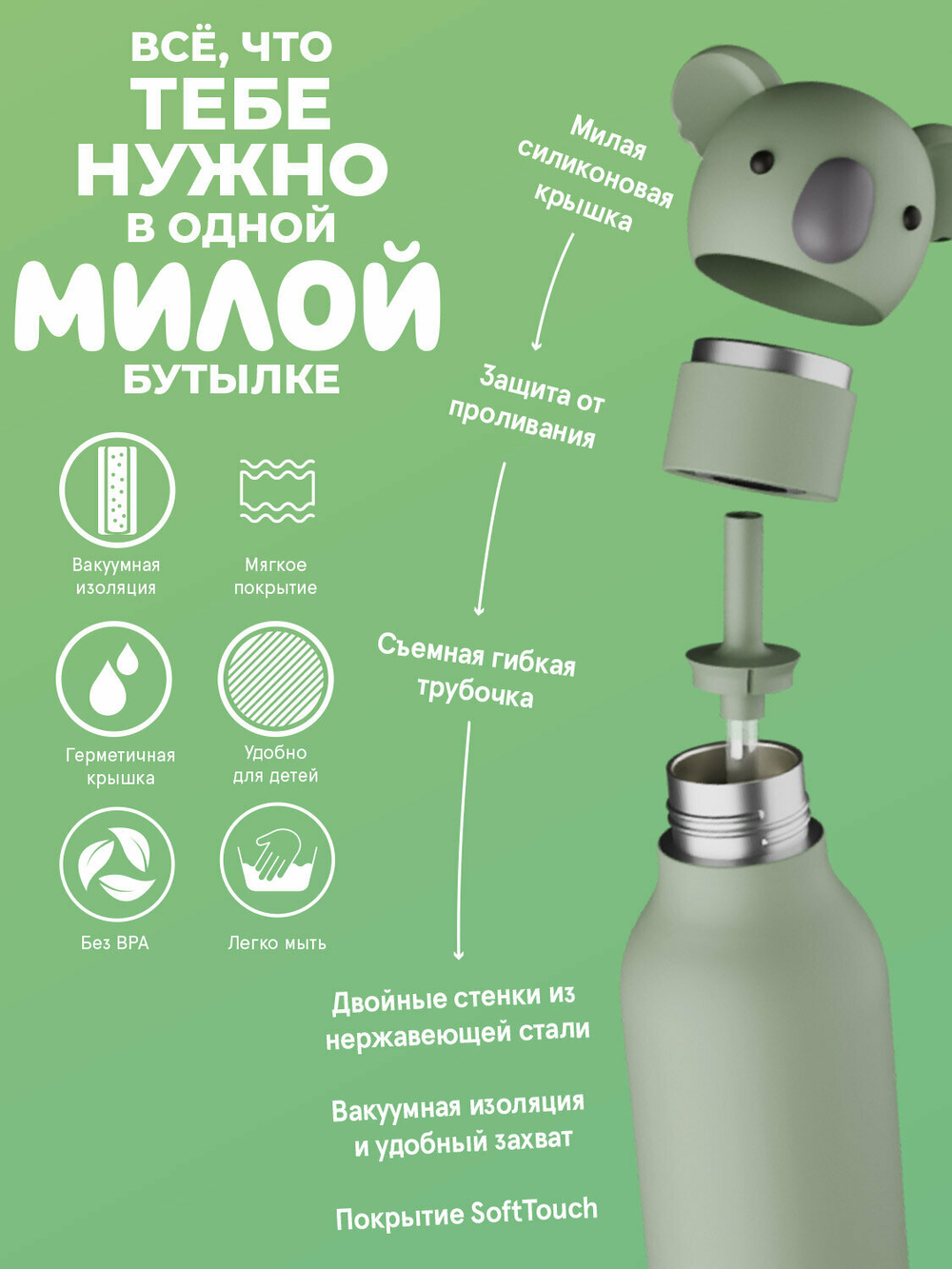 Bestie делают каждый день ярче и удобнее. Эргономичная форма с трубочкой позволяет легко поддерживать водный баланс, даже находясь в движении, а весёлый дизайн добавляет игривую нотку в ваш образ.