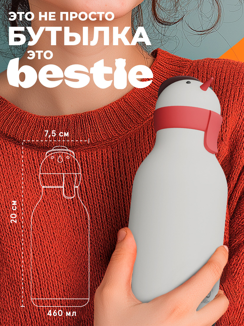 Bestie делают каждый день ярче и удобнее. Эргономичная форма с трубочкой позволяет легко поддерживать водный баланс, даже находясь в движении, а весёлый дизайн добавляет игривую нотку в ваш образ.
