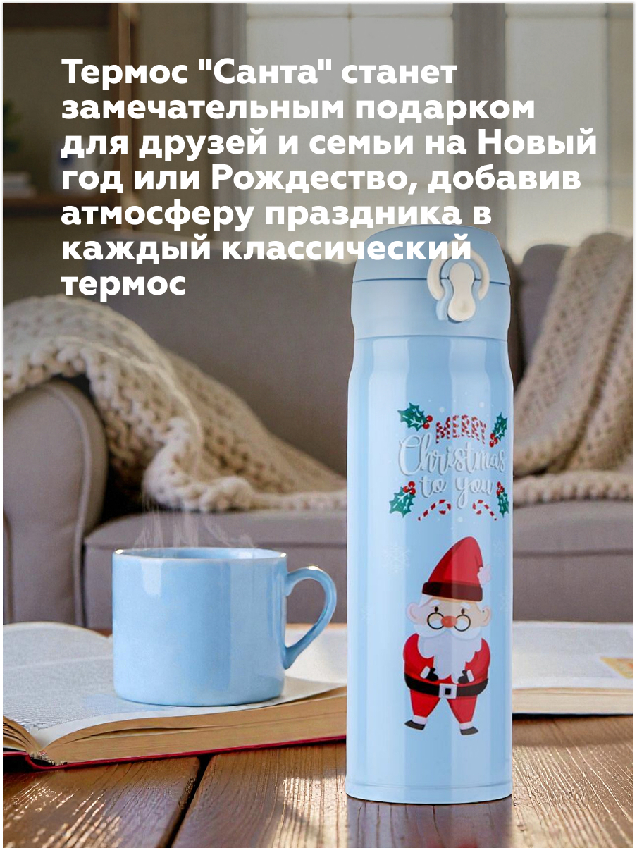 Термос "Санта" станет замечательным подарком для друзей и семьи на Новый год или Рождество, добавив атмосферу праздника в каждый классический термос.