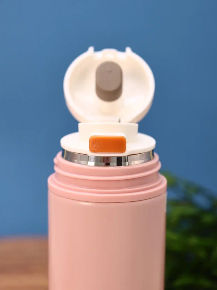 Горлышко закрывается откидным клапаном с резиновым уплотнителем. Удобный поильник позволяет пить непосредственно из термоса. Термос оснащен специальным кольцом для удобства переноски.