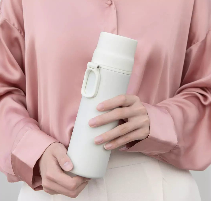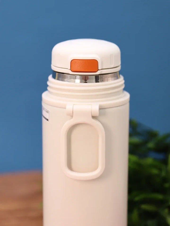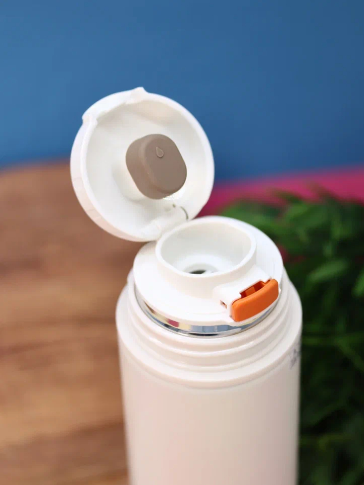 Горлышко закрывается откидным клапаном с резиновым уплотнителем. Удобный поильник позволяет пить непосредственно из термоса. Термос оснащен специальным кольцом для удобства переноски.
