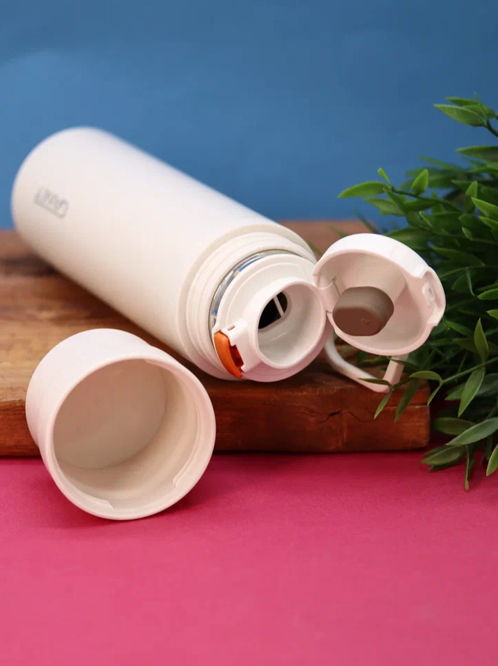 Термос изготовлен из высококачественной нержавеющей стали. Вакуум в межстеночном пространстве колбы и корпуса обеспечивает теплоизолирующие свойства, которые позволяют сохранять температуру 5-6 часов. Отлично подойдёт для хранения горячих и холодных напитков. Отвинчивающаяся крышка, которую можно использовать как стакан, и горлышко термоса выполнены из пластика.