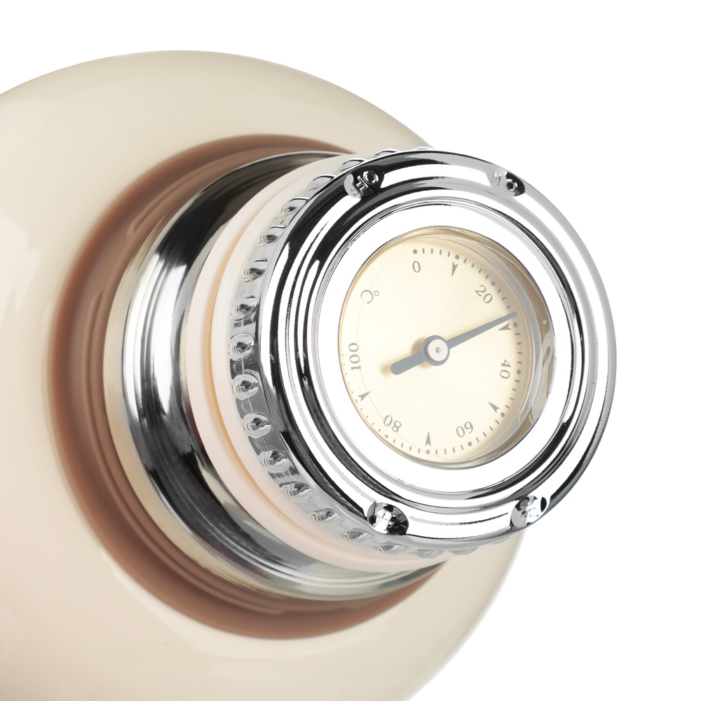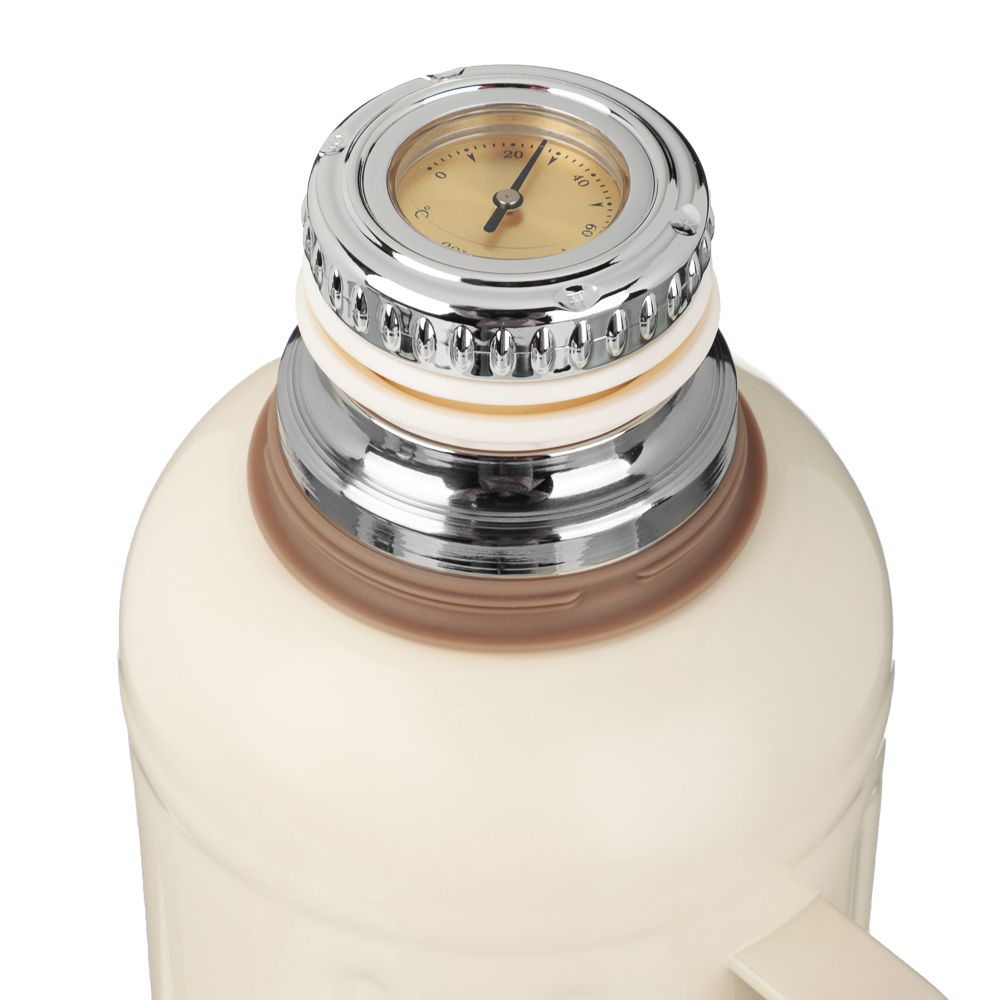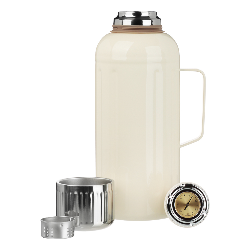 Корпус из полипропилена не нагревается, а колба из нержавеющей стали эффективно сохраняет тепло до 10 часов, а холод – до 12 часов. Герметичная крышка не протекает и способствует лучшей термоизоляции. Удобная ручка позволяет с комфортом разливать напиток в чашки. Надежный механический индикатор обладает высокой точностью измерений.