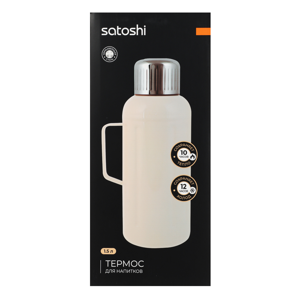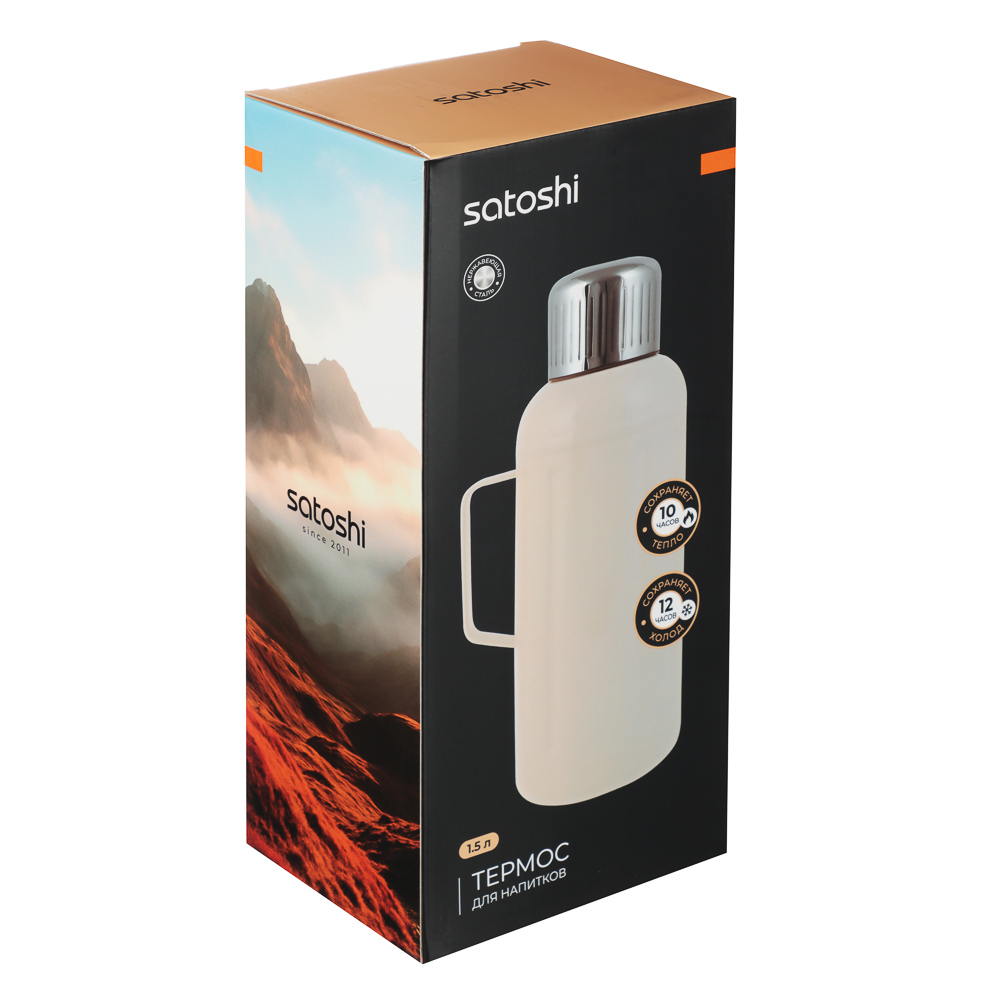 Термос SATOSHI Круиз из нержавеющей стали, объем 1,5 л с индикатором температуры, цвет белый – это современный и практичный аксессуар, который станет прекрасным спутником для путешествий и работы. Подходит для пикника, городских прогулок и отдыха на даче в любое время года.