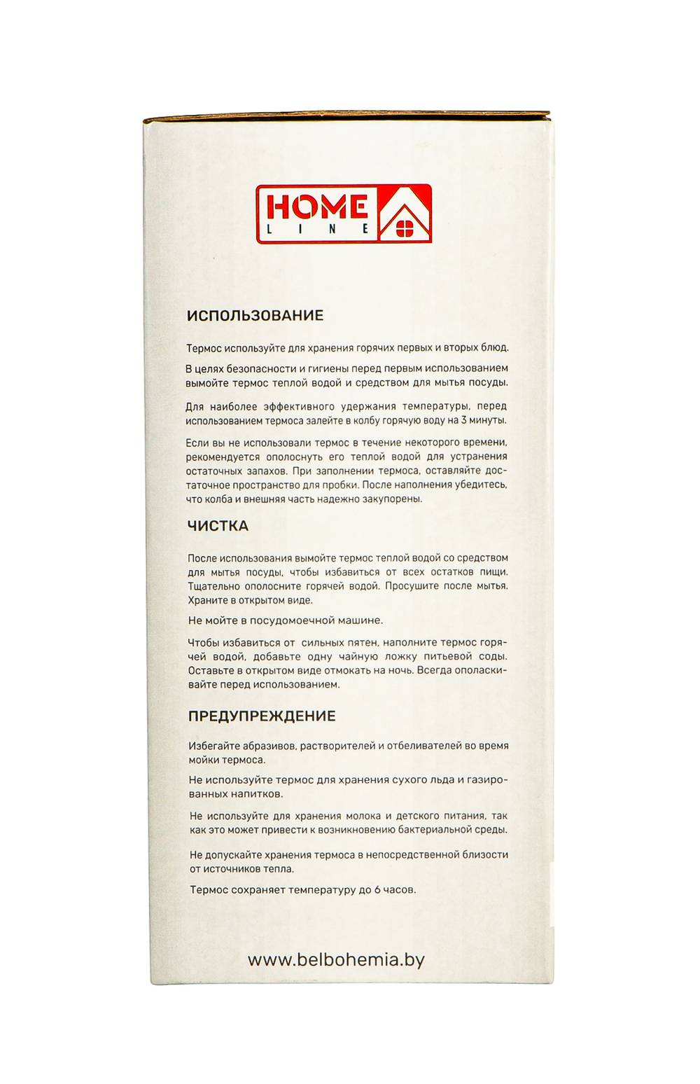 Предназначен только для хранения еды и жидкостей. Перед наполнением термоса прогрейте колбу на протяжении трех минут, чтобы дольше сохранить тепло. Наполненный термос храните только в вертикальном положении. Не подвергать термос быстрым изменениям температур. Промыть перед первым использованием. Держит тепло около 6 часов. Перед первым использованием тщательно промыть моющим средством.