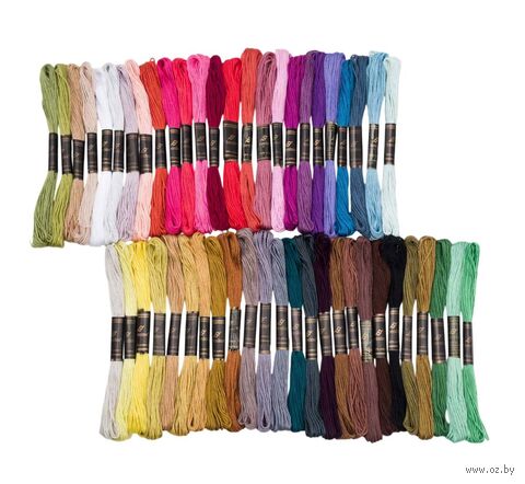В наборе 50 цветов, которые отлично сочетаются между собой. Разнообразие оттенков позволит вам точно передать все нюансы цвета и создать уникальные композиции. Используйте разноцветное мулине Bestex, чтобы вышивать скатерти, салфетки, дорожки, создавать орнаменты в этническом стиле, кайму или надписи, воплощать другие авторские задумки. Кроме вышивки мулине можно использовать для разных техник плетения, для изготовления помпонов и кистей, создания кукол-мотанок и других поделок.