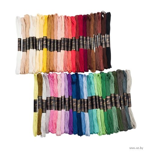 В наборе 50 цветов, которые отлично сочетаются между собой. Разнообразие оттенков позволит вам точно передать все нюансы цвета и создать уникальные композиции. Используйте разноцветное мулине Bestex, чтобы вышивать скатерти, салфетки, дорожки, создавать орнаменты в этническом стиле, кайму или надписи, воплощать другие авторские задумки. Кроме вышивки мулине можно использовать для разных техник плетения, для изготовления помпонов и кистей, создания кукол-мотанок и других поделок.