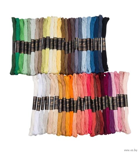 В наборе 50 цветов, которые отлично сочетаются между собой. Разнообразие оттенков позволит вам точно передать все нюансы цвета и создать уникальные композиции. Используйте разноцветное мулине Bestex, чтобы вышивать скатерти, салфетки, дорожки, создавать орнаменты в этническом стиле, кайму или надписи, воплощать другие авторские задумки. Кроме вышивки мулине можно использовать для разных техник плетения, для изготовления помпонов и кистей, создания кукол-мотанок и других поделок.