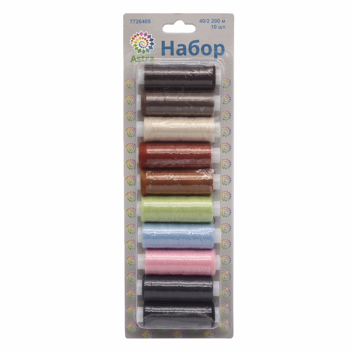 Набор ниток "Ассорти №40/2" от Astra&Craft – прекрасный вариант для шитья, ремонта текстильных изделий, рукоделия. Подойдут для бытовых и промышленных швейных машин.