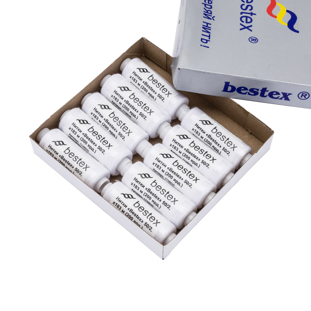 Нитки Bestex №50/2 в наборе "Белый" – прекрасный вариант для шитья, ремонта текстильных изделий, рукоделия. Подойдут для бытовых швейных машин.
