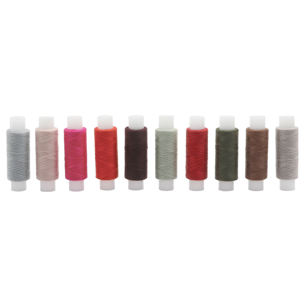 Нитки ассорти №3 подходят для легких тканей и тканей среднего веса. Позволяют выполнять соединительные швы или декоративную отстрочку. Подходят также для обметки краев ткани.