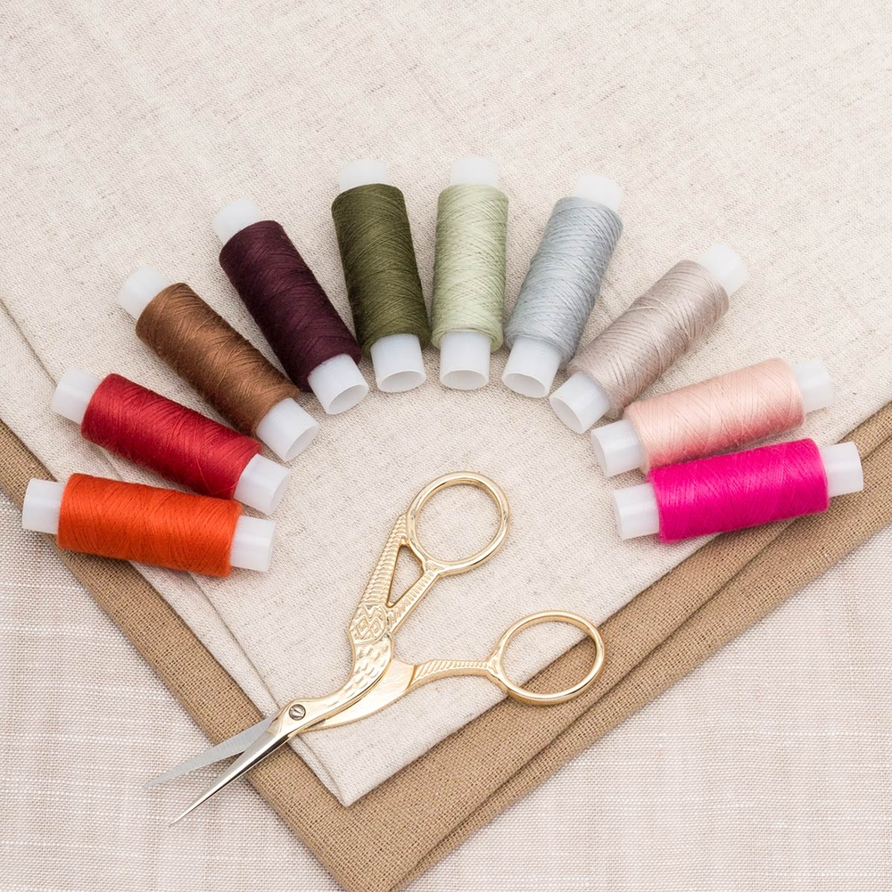 В наборе 10 разноцветных бобины с длиной нити 200 м – такая длина оптимальна для бытовых швейных машин.
