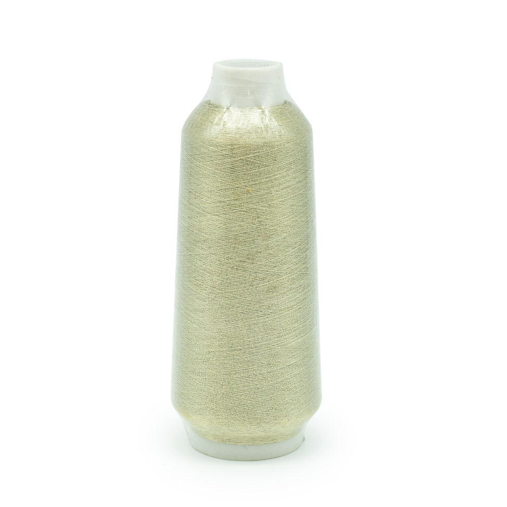 Нитки с металлизированным эффектом состоит из полиэфирной основы, обвитой люрексом. Люрексовая нить характеризуется гладкой текстурой и небольшой упругостью.