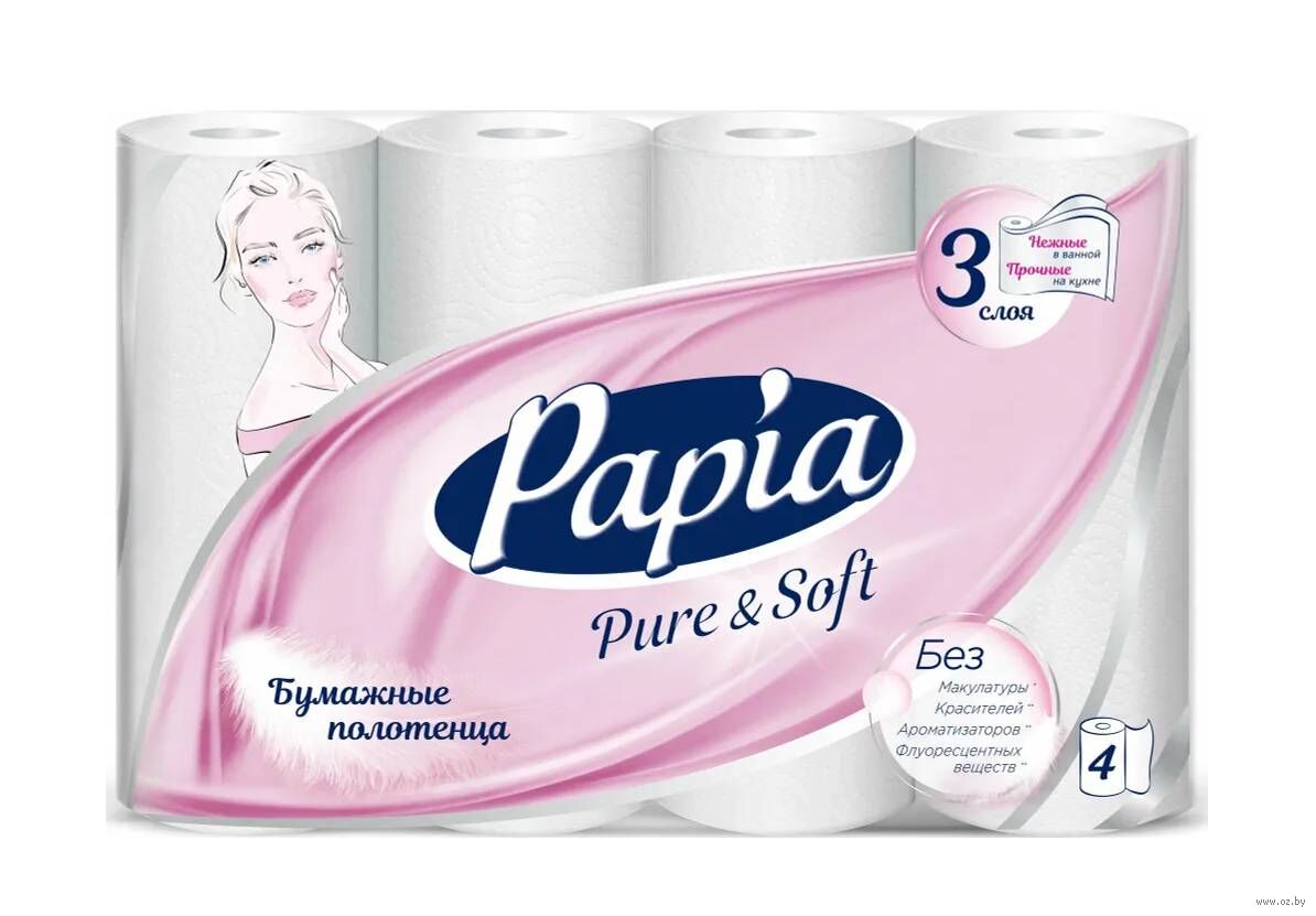 Papia "Pure Soft" – это бумажные полотенца высочайшего качества, созданные из экологически чистого материала – 100% первичной целлюлозы. Они обеспечивают отличную впитываемость и идеально подходят для ежедневного использования.