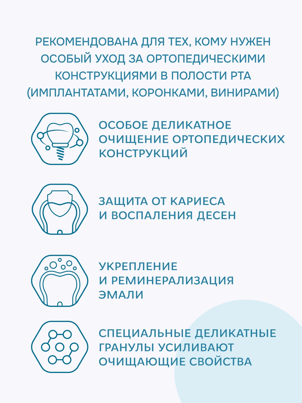 Рекомендована для тех, кому нужен особый уход за ортопедическими конструкциями в полости рта (имплантатами, коронками, винирами).
