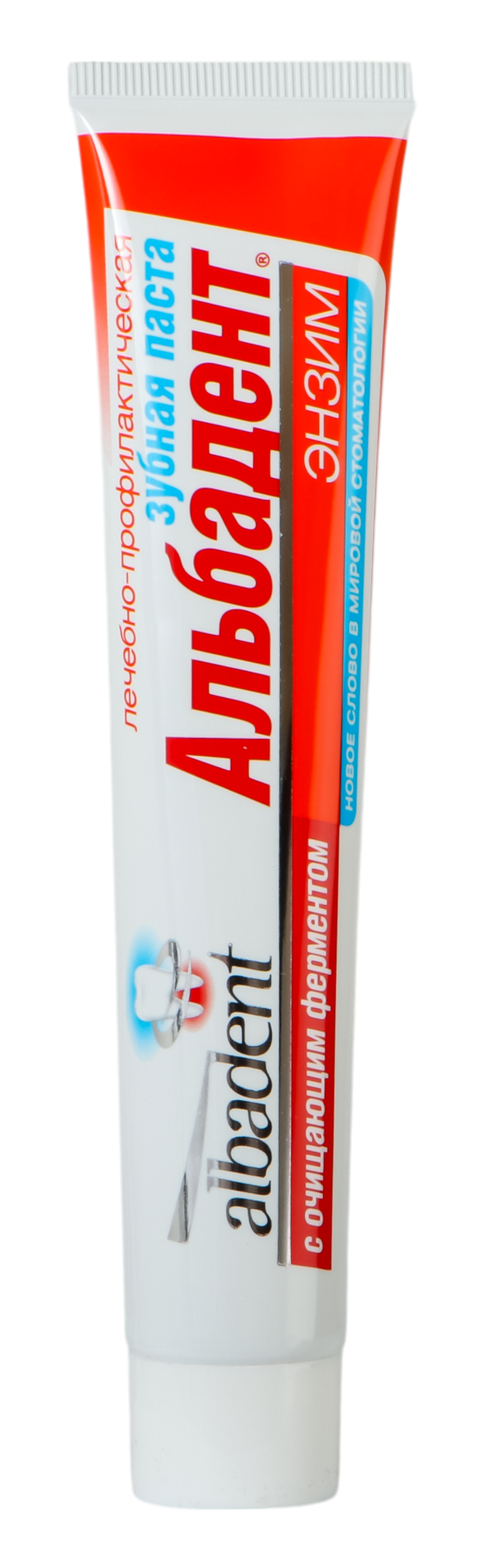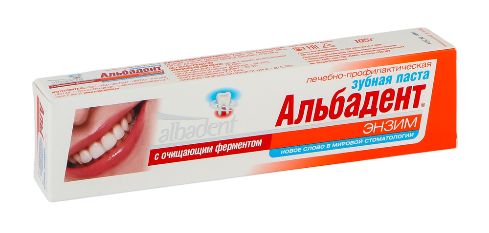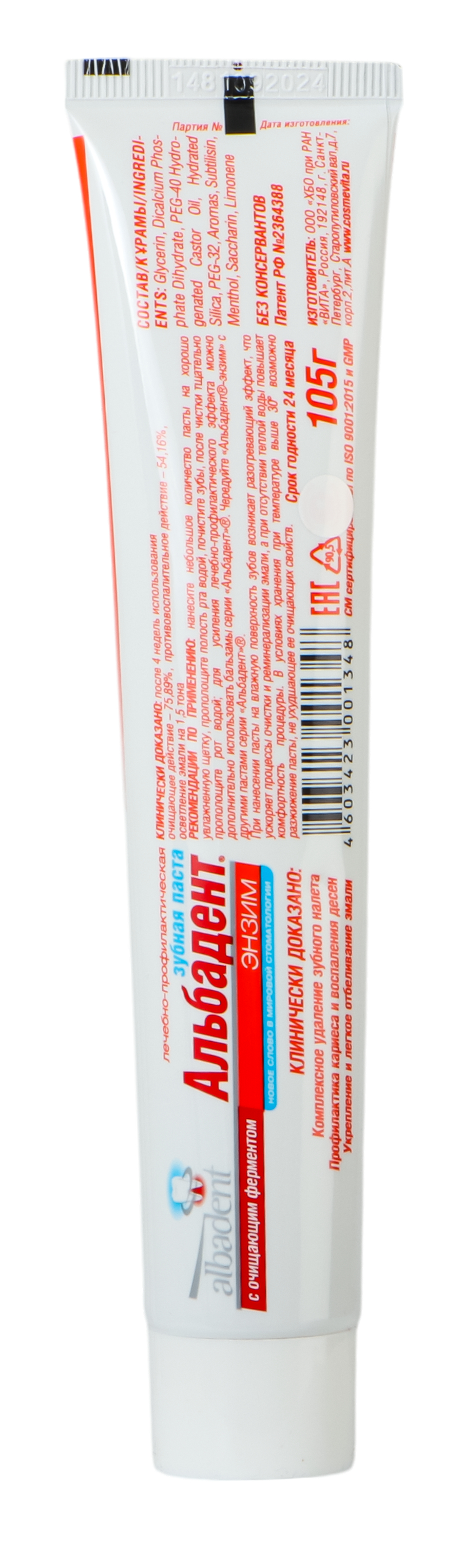 Глицерин, дикальцийфосфат дигидрат, ПЭГ-40 гидрогенизированное касторовое масло, гидратированный диоксид кремния, ПЭГ-32, ароматизаторы, субтилизин, ментол, сахарин, лимонен.