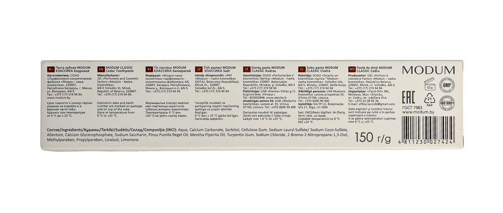 | Изготовитель | СОАО Парфюмерно-косметическая фабрика "Модум - наша косметика", Республика Беларусь, 220007 г. Минск, ул. Володько, 6/6-5 |