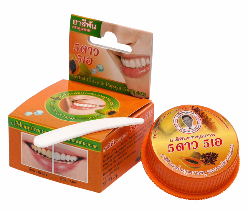 В плодах папайи содержится папаин, который оказывает осветляющее действие на зубы, расщепляя белковую основу налета, поэтому его добавляют в зубные пасты.