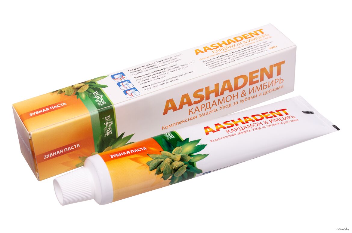 Зубная паста "Кардамон и имбирь" для ухода за полостью рта, содержит высокоэффективный Аюрведический комплекс лечебных трав для профилактики воспалительных процессов пародонта, кровоточивости десен и кариеса. Хорошо удаляет зубной налет и освежает полость рта.